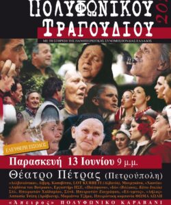 Συμμετέχουν δεκαεπτά πολυφωνικά σχήματα, όμιλοι, εργαστήρια από όλες τις περιοχές, τις γενιές, τις προσεγγίσεις του πολυφωνικού τραγουδιού, περισσότεροι από εκατόν είκοσι βιωματικοί και νέοι ερμηνευτές!
