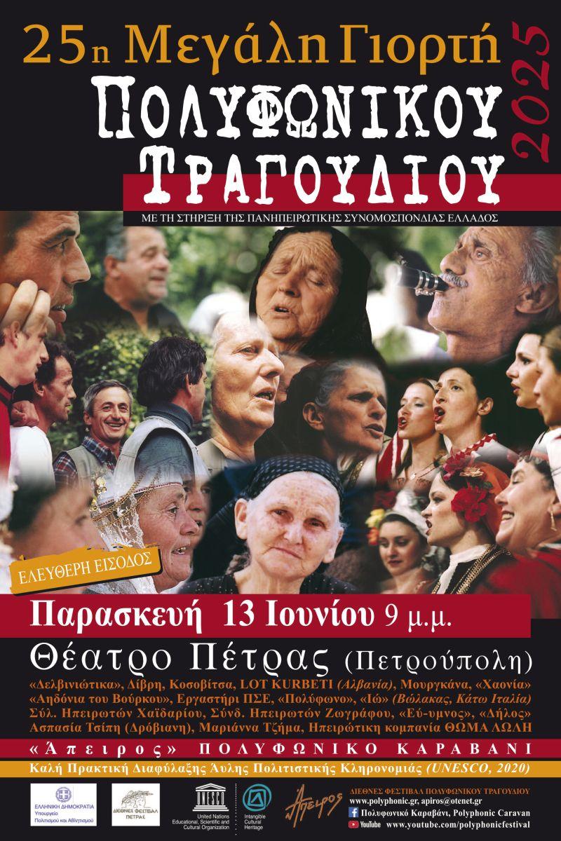 Το Πολυφωνικό Καραβάνι πραγματοποιεί, με δωρεάν είσοδο, την 25η Μεγάλη Γιορτή Πολυφωνικού Τραγουδιού, «Φωνές της Πέτρας» 2025.