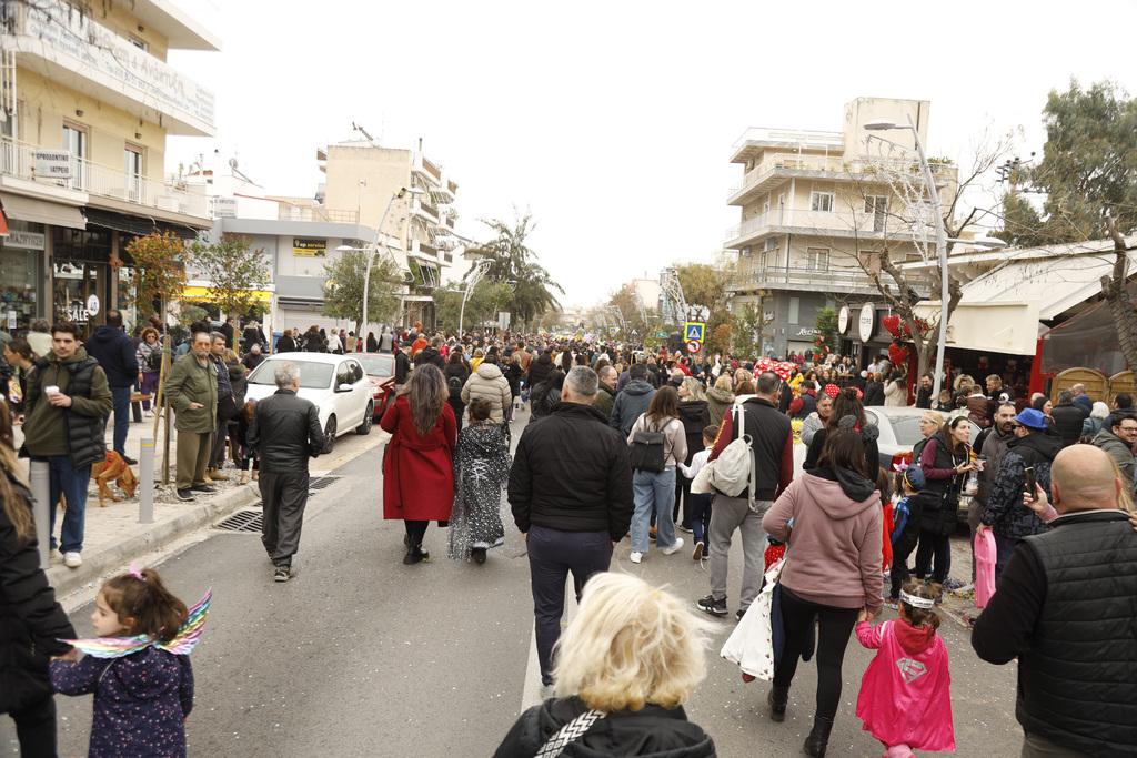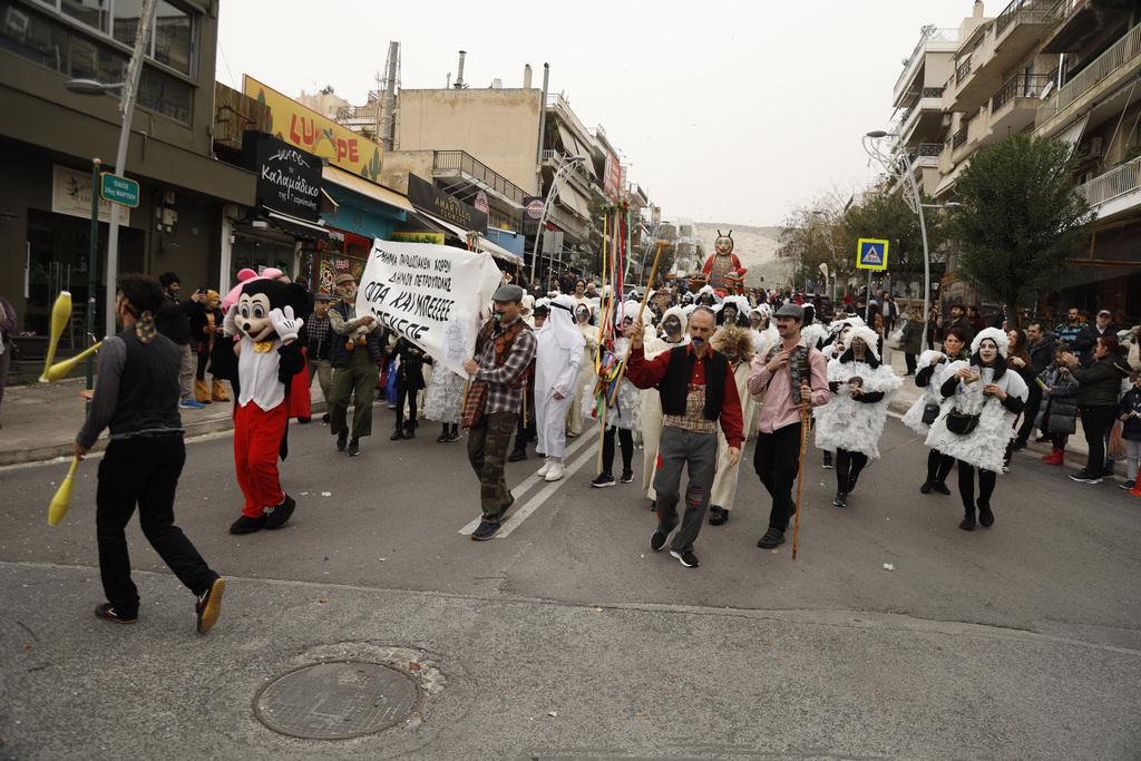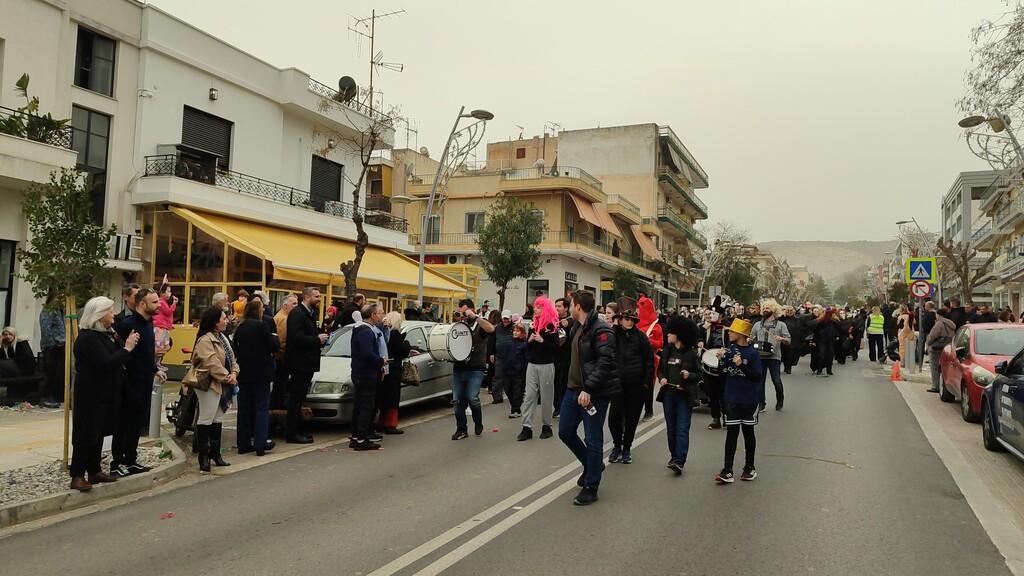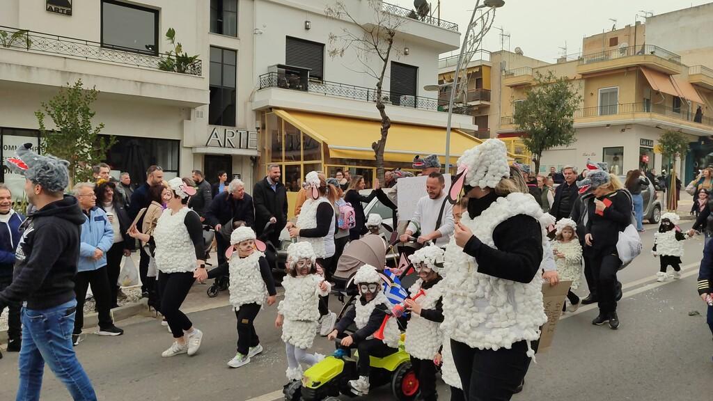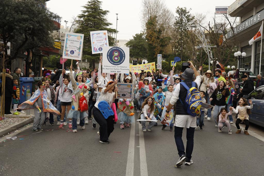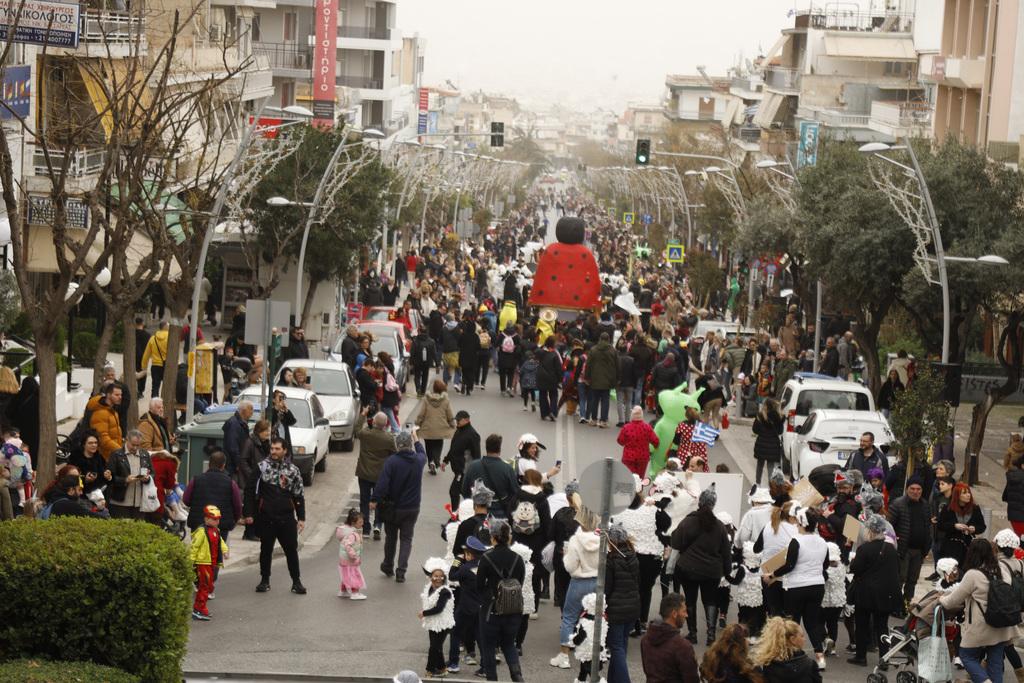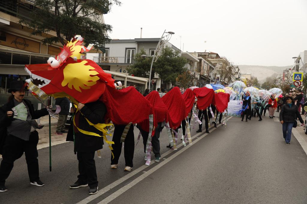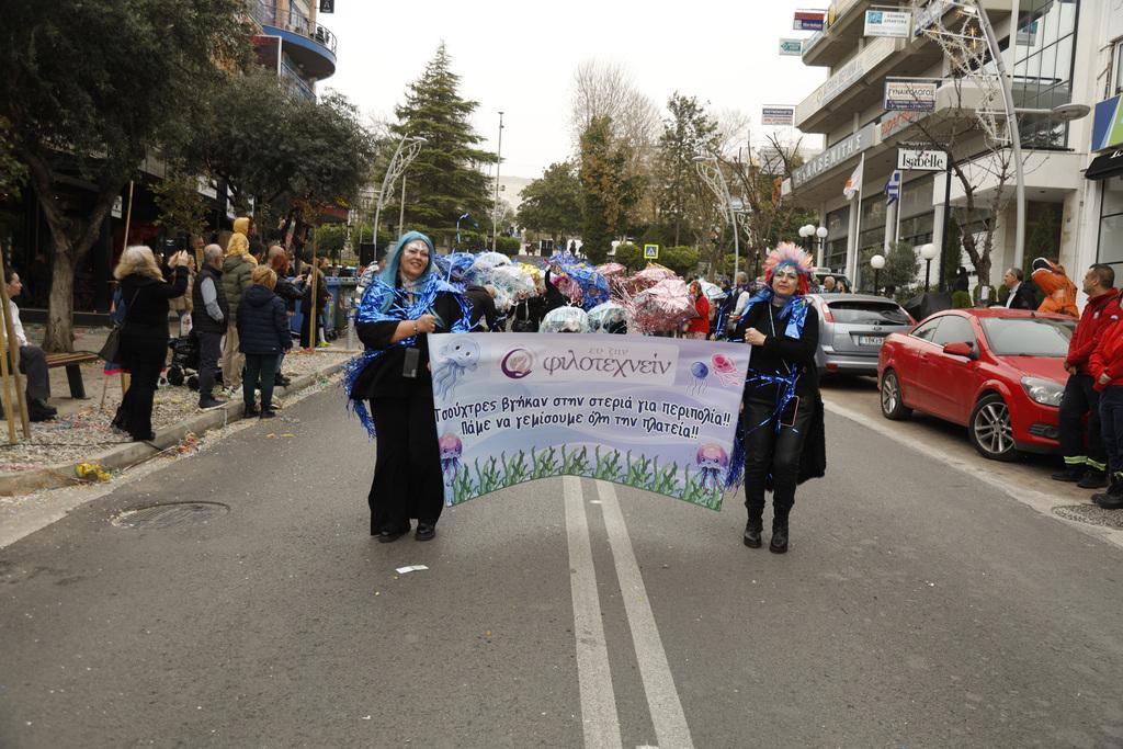 Οργανωμένες ομάδες από συλλόγους, σχολεία, φορείς καθώς και ελεύθεροι καρναβαλιστές, μπροστά και πίσω από τα τρία άρματα του Δήμου, ντυμένοι με πολύχρωμες στολές και με θέματα από την καθημερινότητα «πλεγμένα» με μπόλικη φαντασία και σατυρική διάθεση, ξεκίνησαν το πρωί από το ύψος της οδού Λεωνίδου και κατηφόρισαν την κεντρική λεωφόρο της πόλης μας, σκορπώντας απλόχερα κέφι και γέλιο.