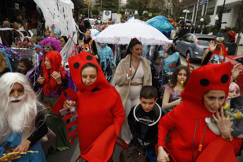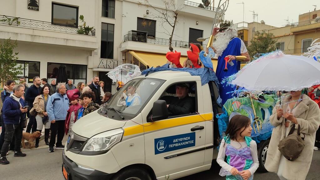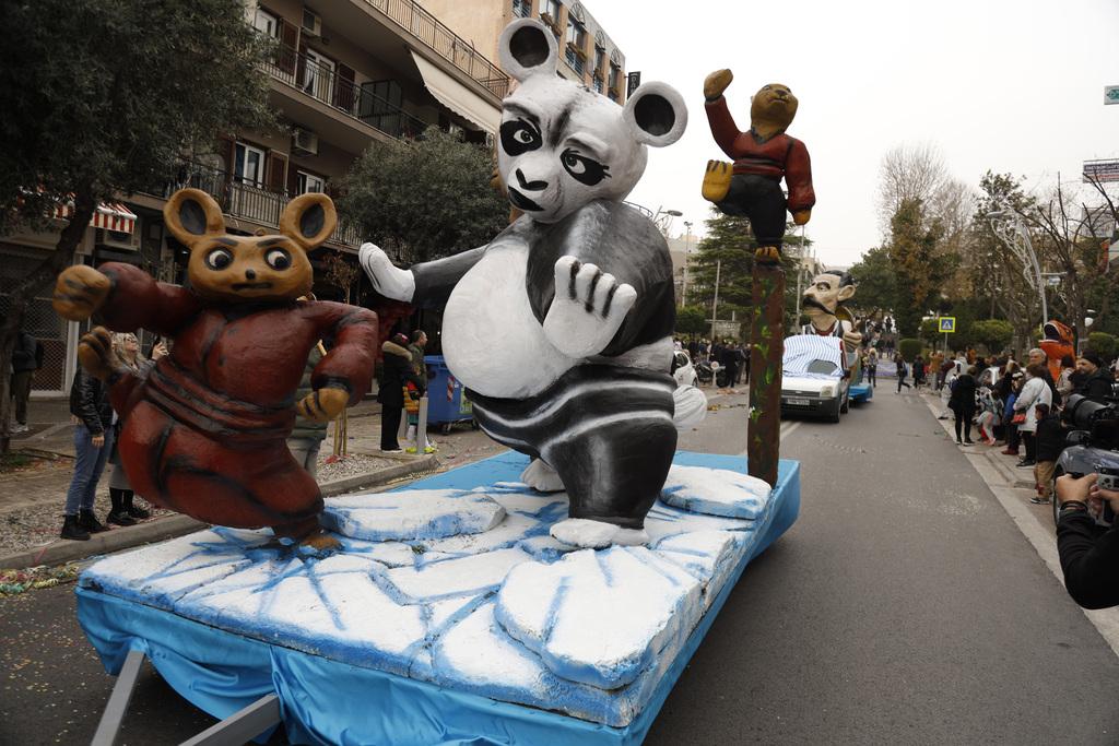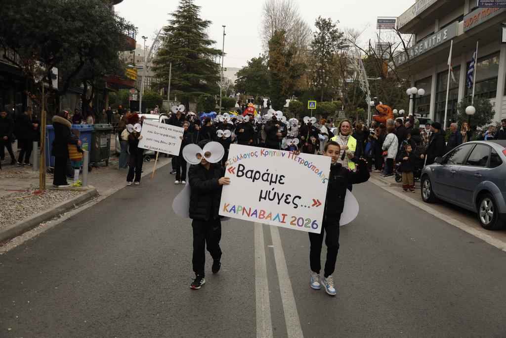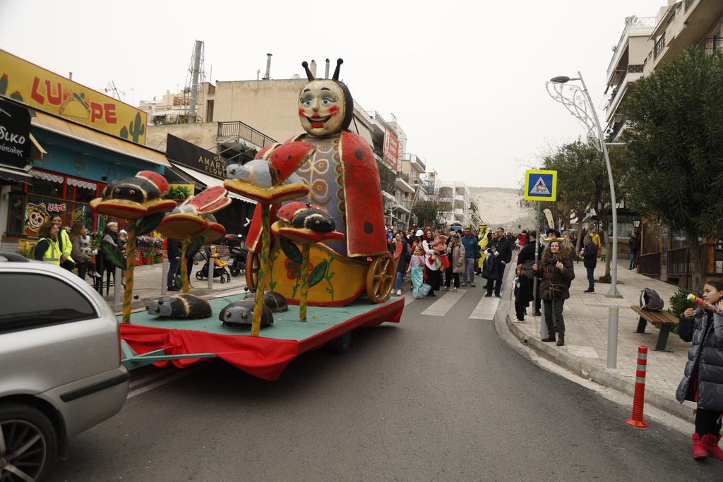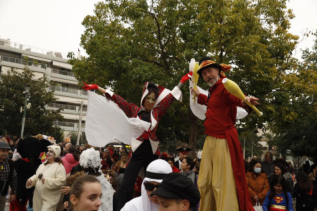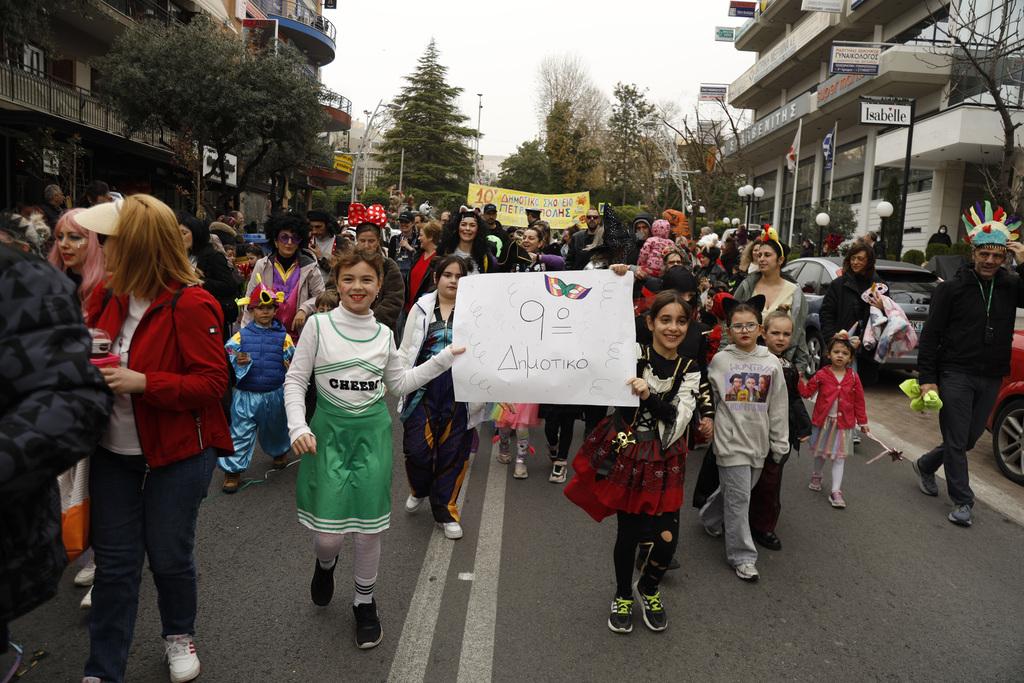 Οργανωμένες ομάδες από συλλόγους, σχολεία, φορείς καθώς και ελεύθεροι καρναβαλιστές, μπροστά και πίσω από τα τρία άρματα του Δήμου, ντυμένοι με πολύχρωμες στολές και με θέματα από την καθημερινότητα «πλεγμένα» με μπόλικη φαντασία και σατυρική διάθεση, ξεκίνησαν το πρωί από το ύψος της οδού Λεωνίδου και κατηφόρισαν την κεντρική λεωφόρο της πόλης μας, σκορπώντας απλόχερα κέφι και γέλιο.