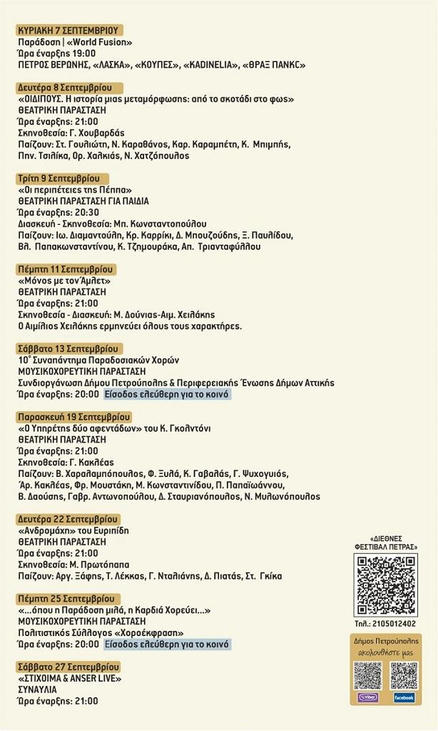 Ο Δήμος Πετρούπολης ανακοινώνει το πρόγραμμα εκδηλώσεων του «Διεθνούς Φεστιβάλ Πέτρας» 2025.