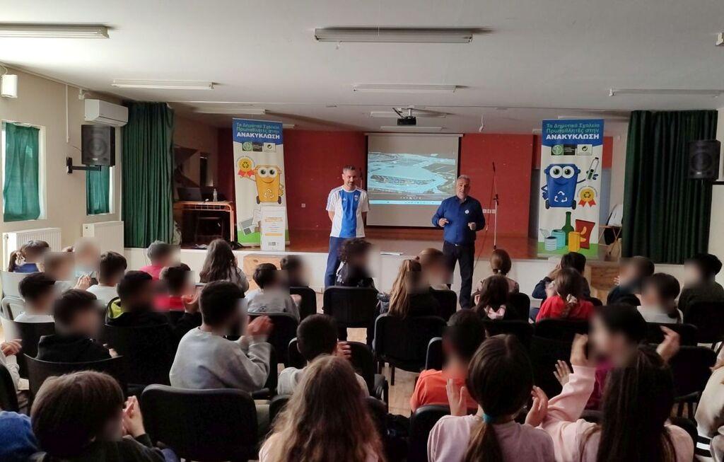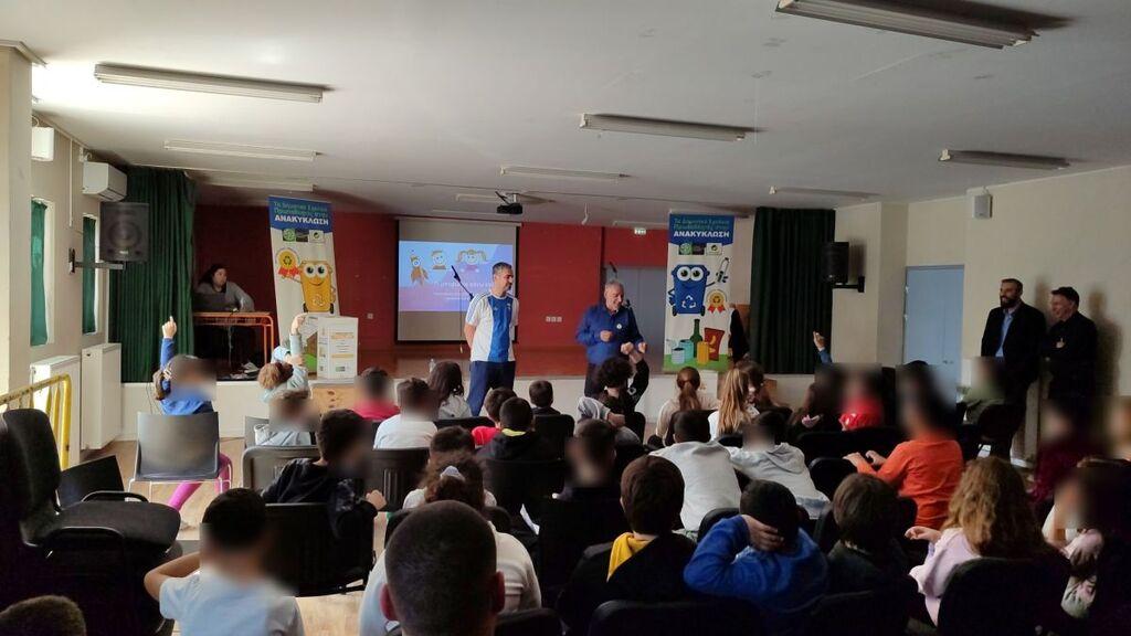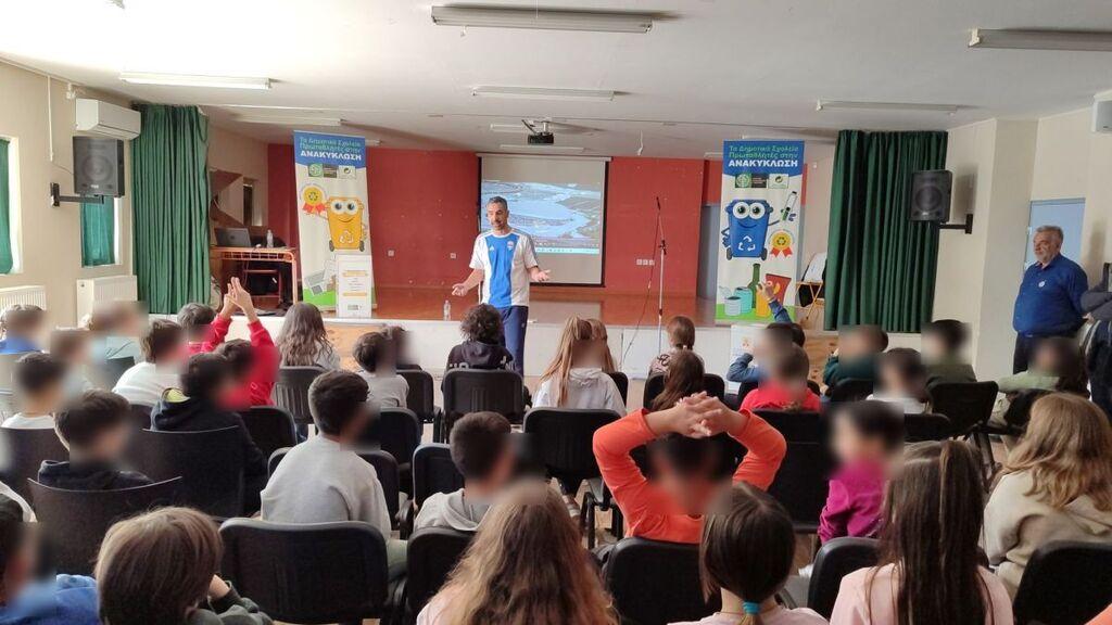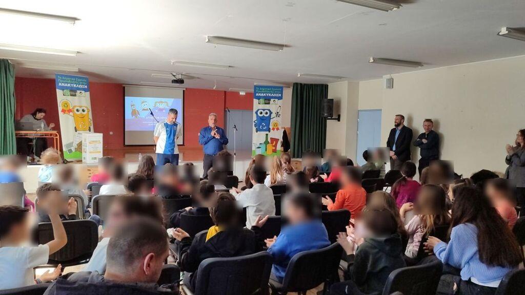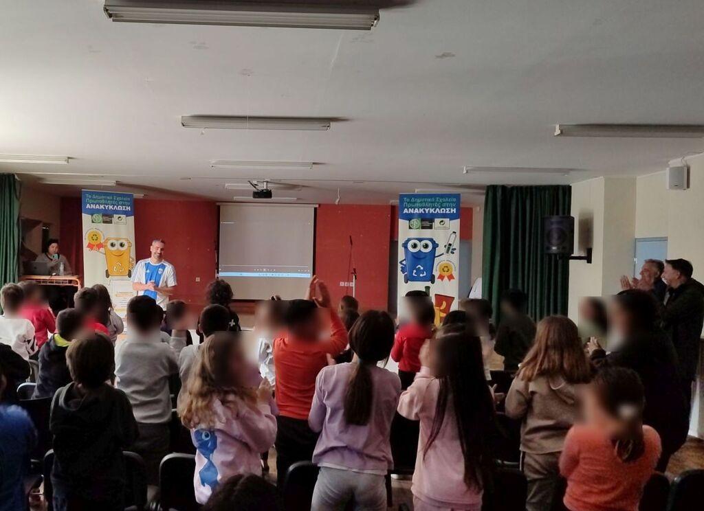 Αμέσως μετά, οι μαθητές συμμετείχαν σε εκπαιδευτικό παιχνίδι υπό τις οδηγίες του βετεράνου αθλητή και παρέλαβαν ως χρηστικό δώρο, από μία τσάντα ανακύκλωσης (μπλε κάδος) και μια αναμνηστική κονκάρδα.