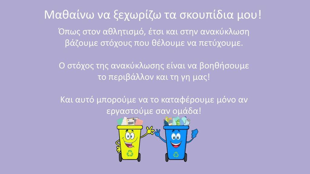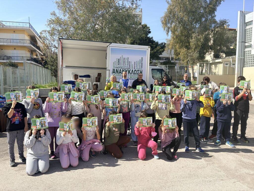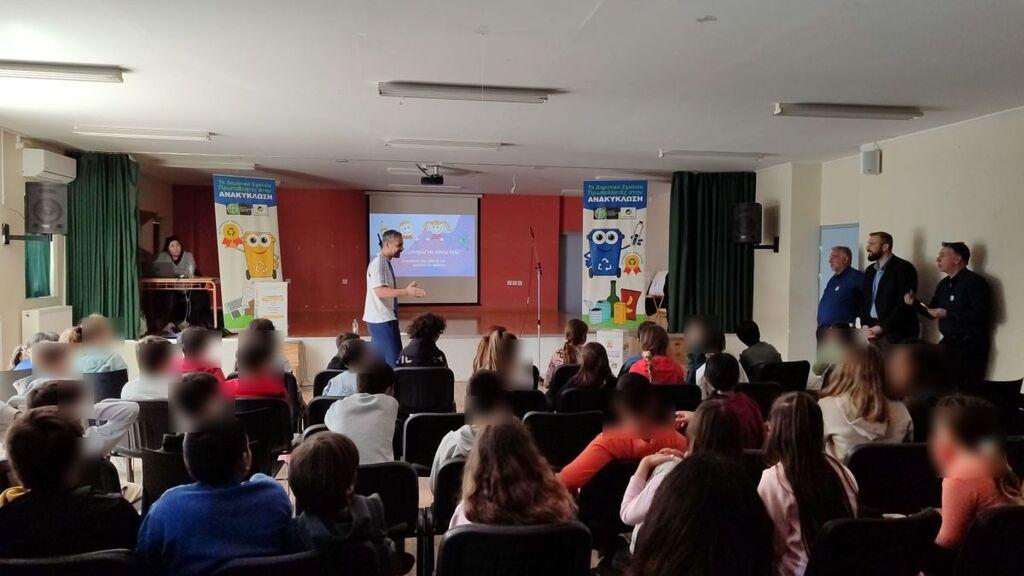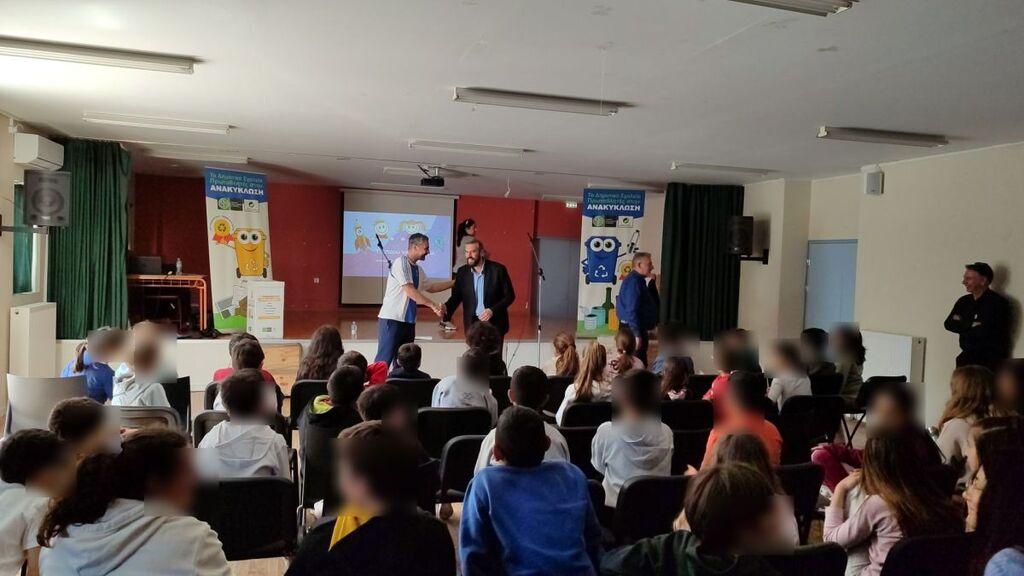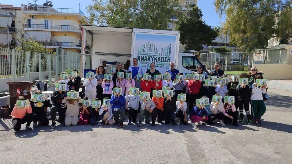 Αμέσως μετά, οι μαθητές συμμετείχαν σε εκπαιδευτικό παιχνίδι υπό τις οδηγίες του βετεράνου αθλητή και παρέλαβαν ως χρηστικό δώρο, από μία τσάντα ανακύκλωσης (μπλε κάδος) και μια αναμνηστική κονκάρδα.