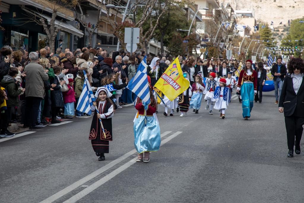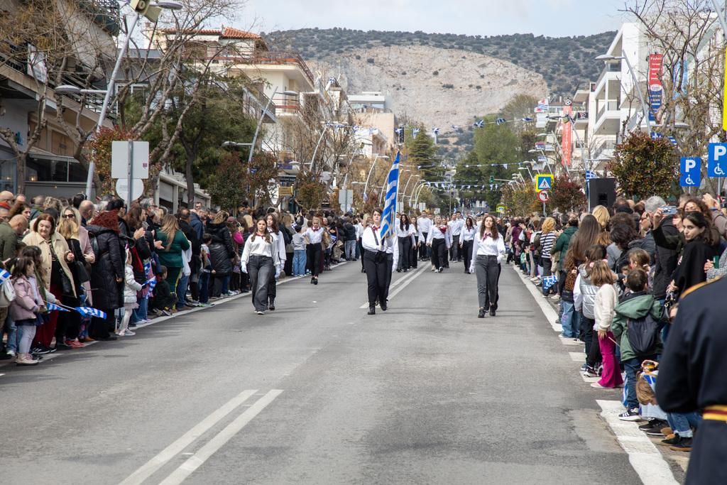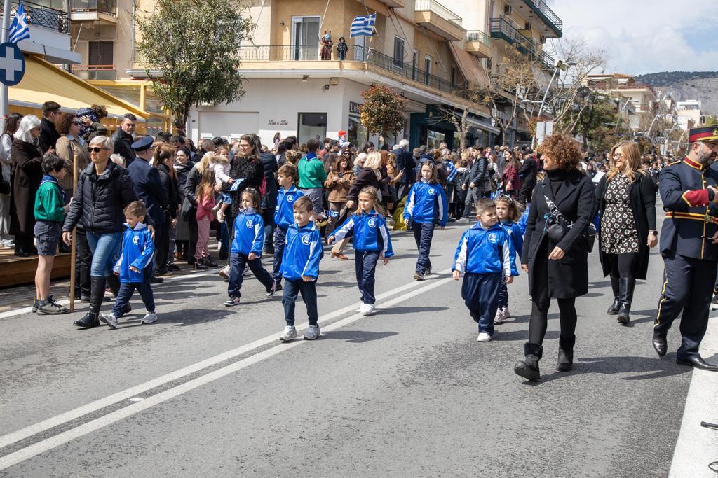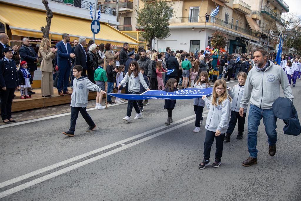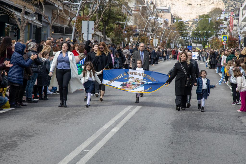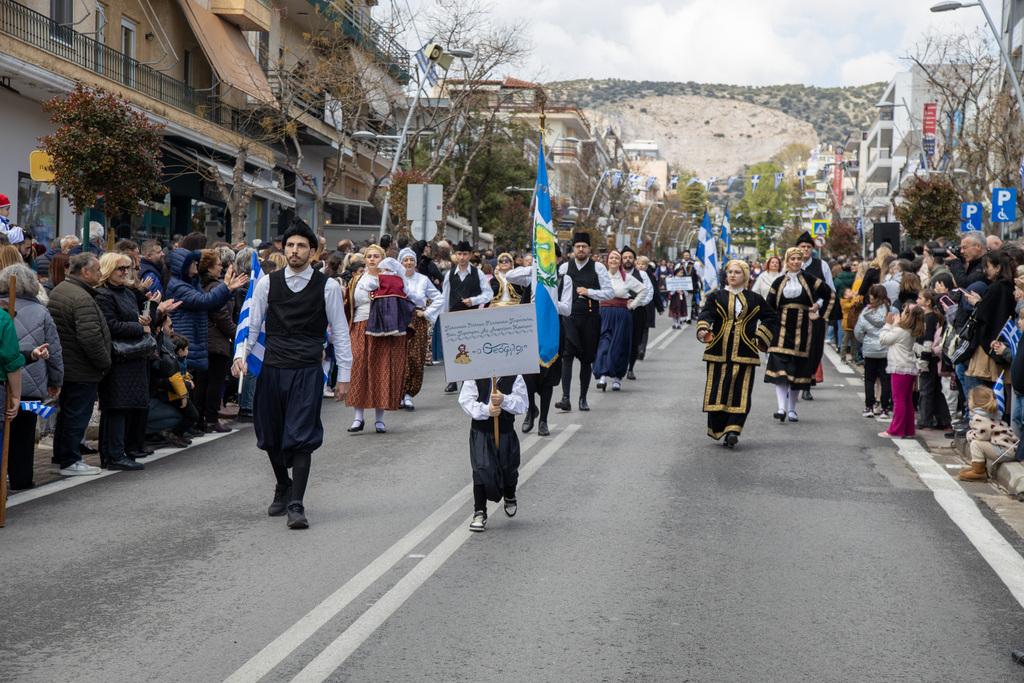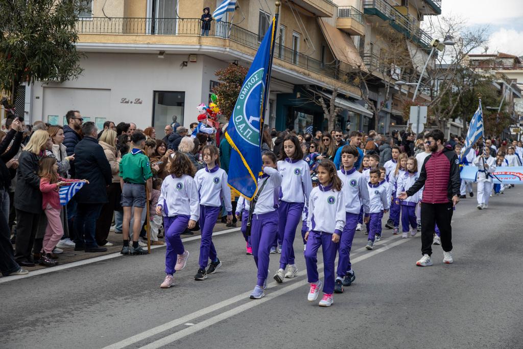 Στη συνέχεια ξεκίνησε η παρέλαση μαθητών και μαθητριών, μελών από τα δημοτικά τμήματα Πολιτισμού και Αθλητισμού, τους Εθνικοτοπικούς-Πολιτιστικούς Συλλόγους και τα Αθλητικά Σωματεία της πόλης μας.