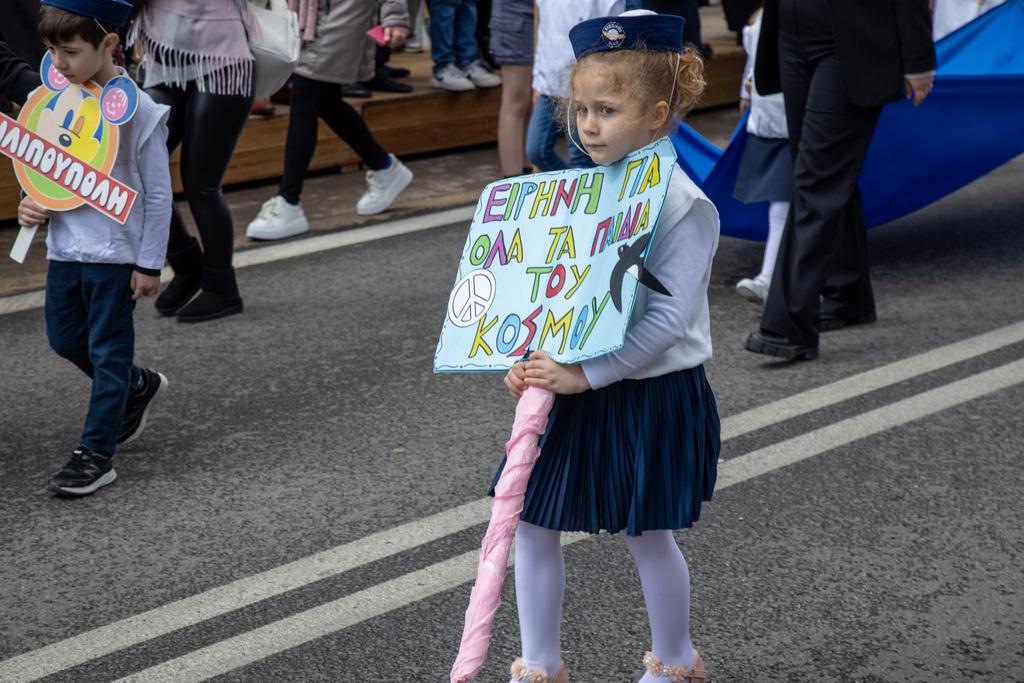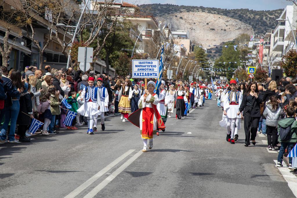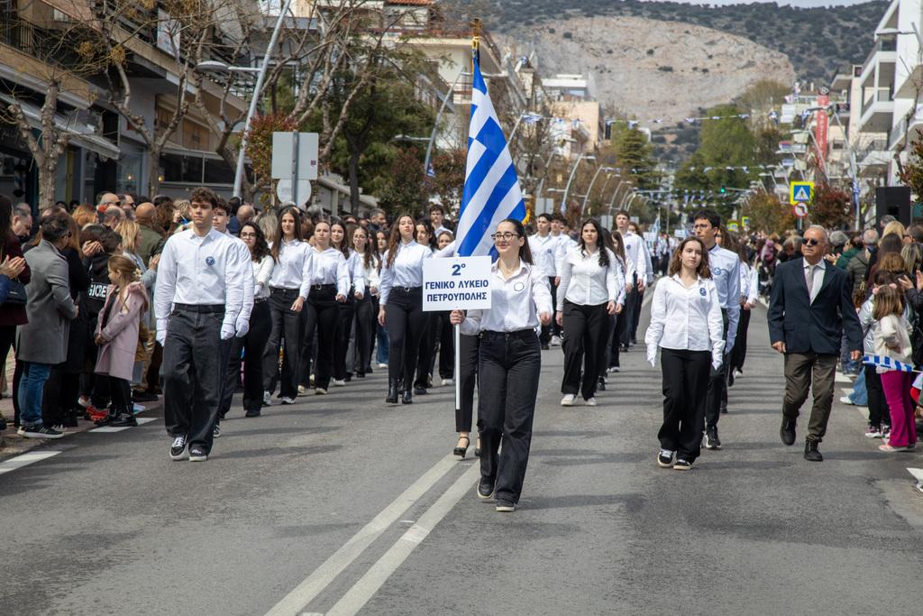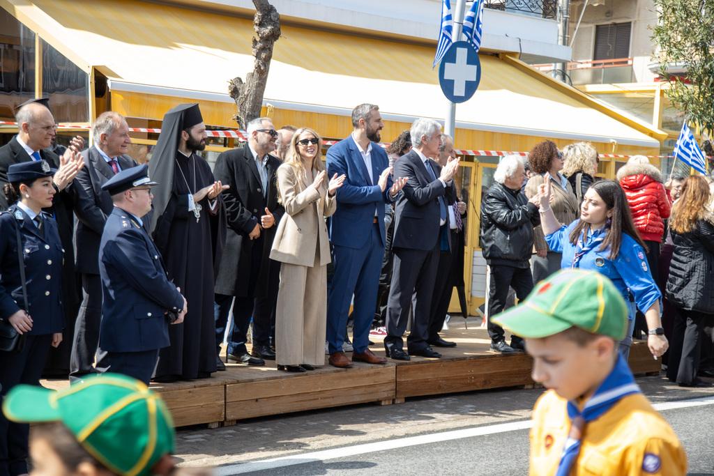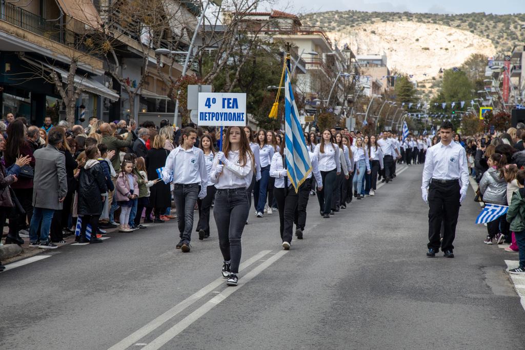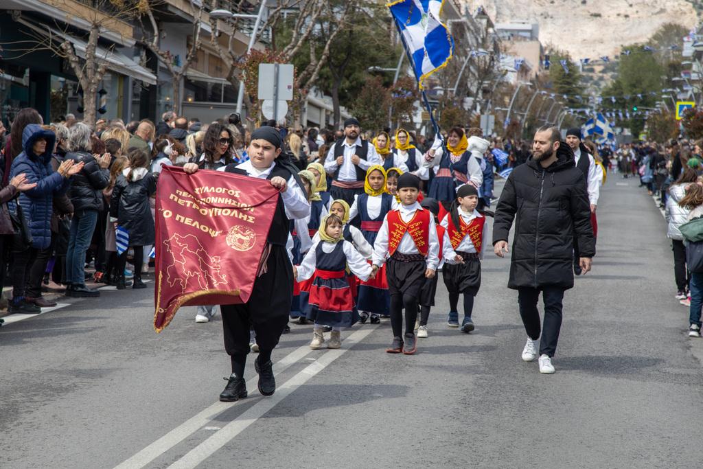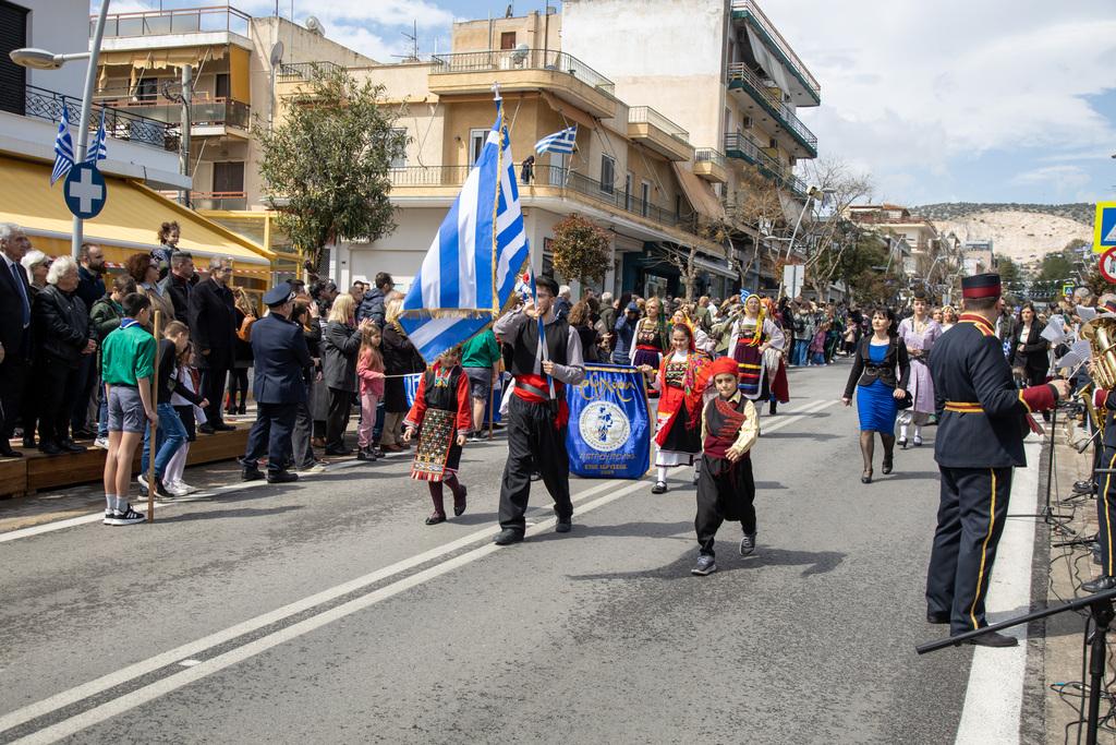 Στη συνέχεια ξεκίνησε η παρέλαση μαθητών και μαθητριών, μελών από τα δημοτικά τμήματα Πολιτισμού και Αθλητισμού, τους Εθνικοτοπικούς-Πολιτιστικούς Συλλόγους και τα Αθλητικά Σωματεία της πόλης μας.