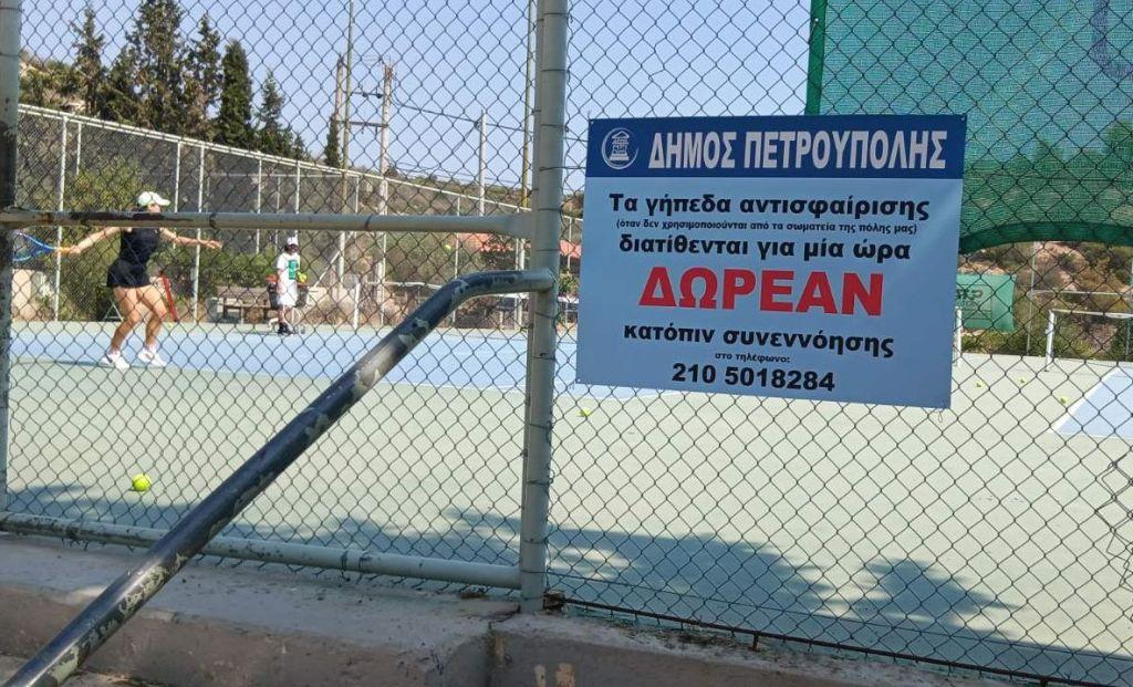 Ο Δήμος Πετρούπολης ενημερώνει τους δημότες ότι τα γήπεδα ποδοσφαίρου και αντισφαίρισης που βρίσκονται στον πολυχώρο «Ποικίλο» -όταν δεν χρησιμοποιούνται από τα σωματεία της πόλης μας- είναι ΔΩΡΕΑΝ στη διάθεση του κοινού, για μία ώρα.