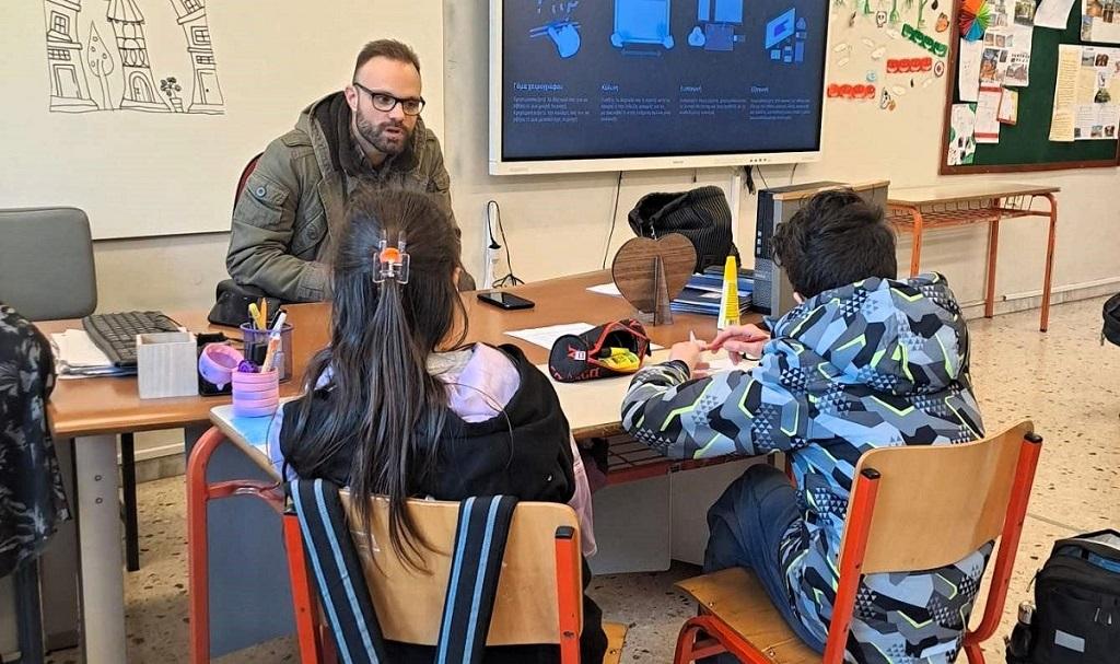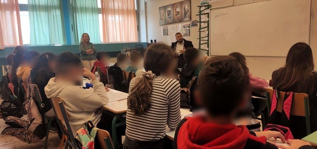 Οι εκπρόσωποι της Δημοτικής Αρχής συζήτησαν με τους μαθητές της ΣΤ’ τάξης και τις υπεύθυνες εκπαιδευτικούς των τριών τμημάτων Ανθή Λουκοπούλου, Μαρία Σουφλή και Εύη Ζευγίτη, στο πλαίσιο του μαθήματος της Κοινωνικής και Πολιτικής Αγωγής και του προγράμματος «Δράσεις Ενεργού Πολίτη».