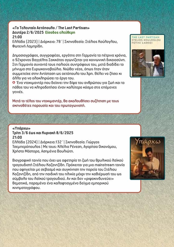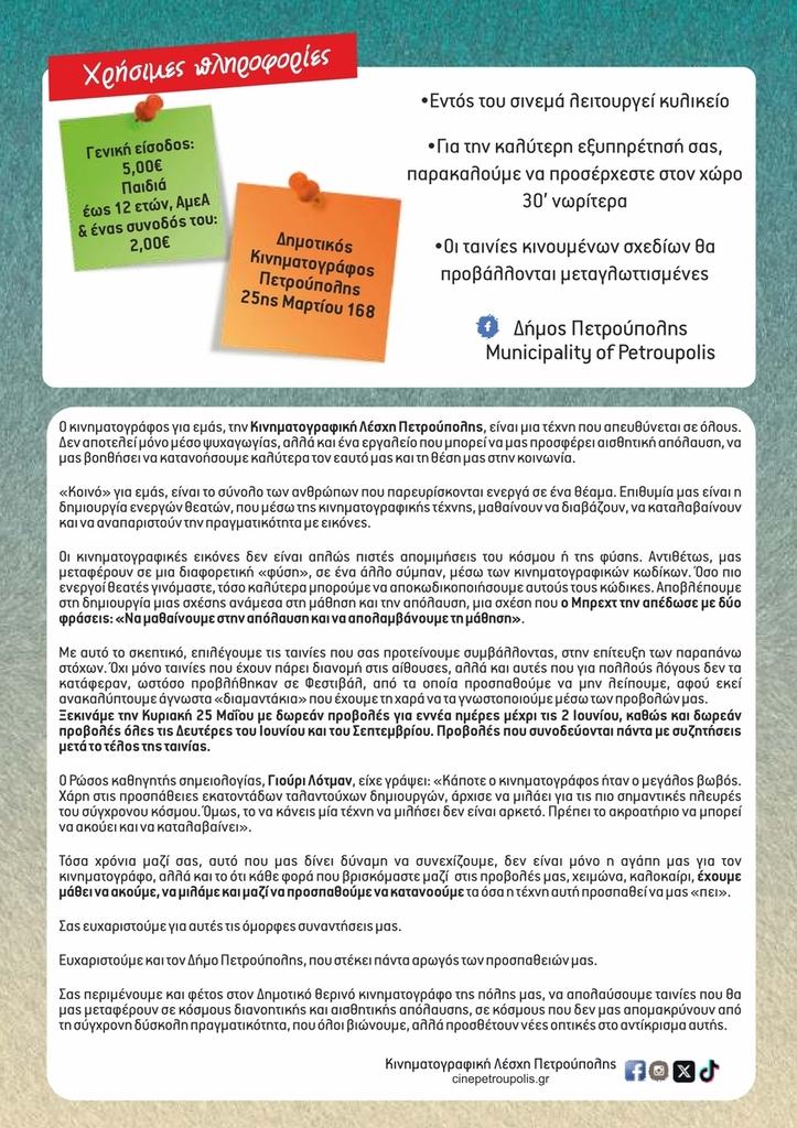 «Σινέ Πετρούπολις» – Πρόγραμμα προβολών 2025