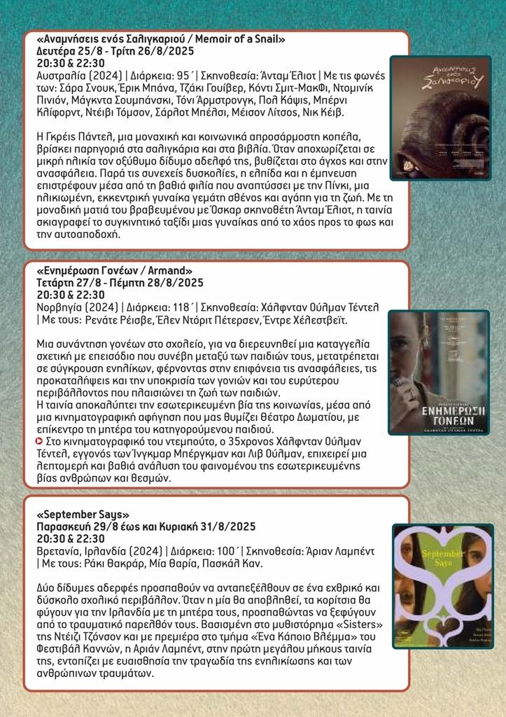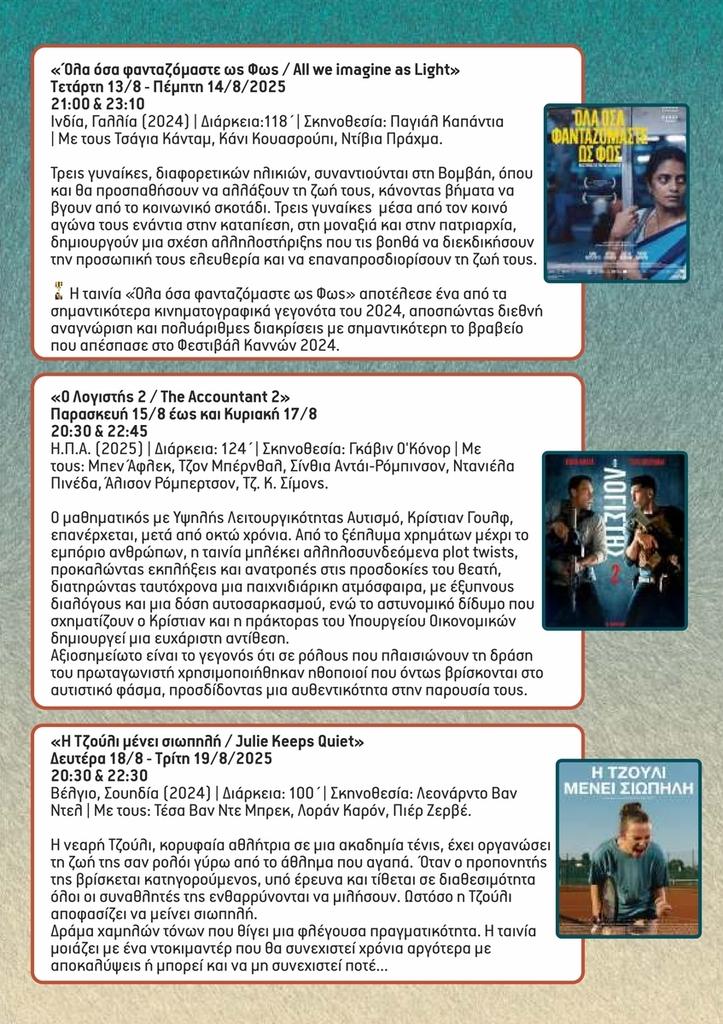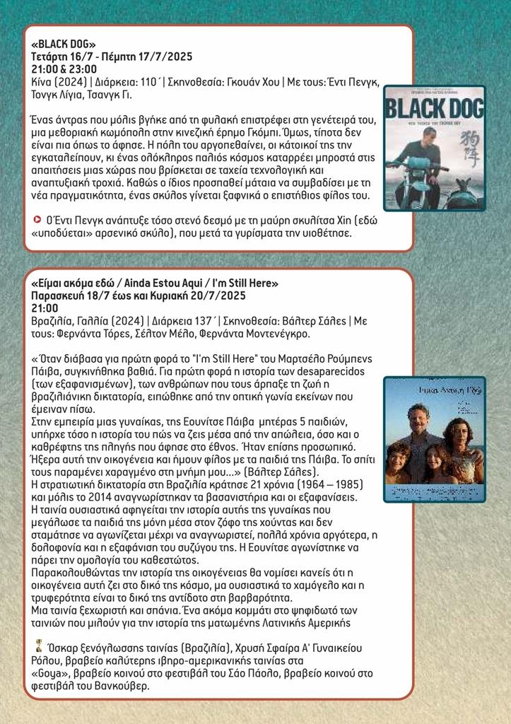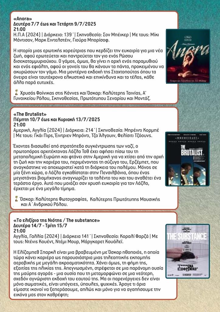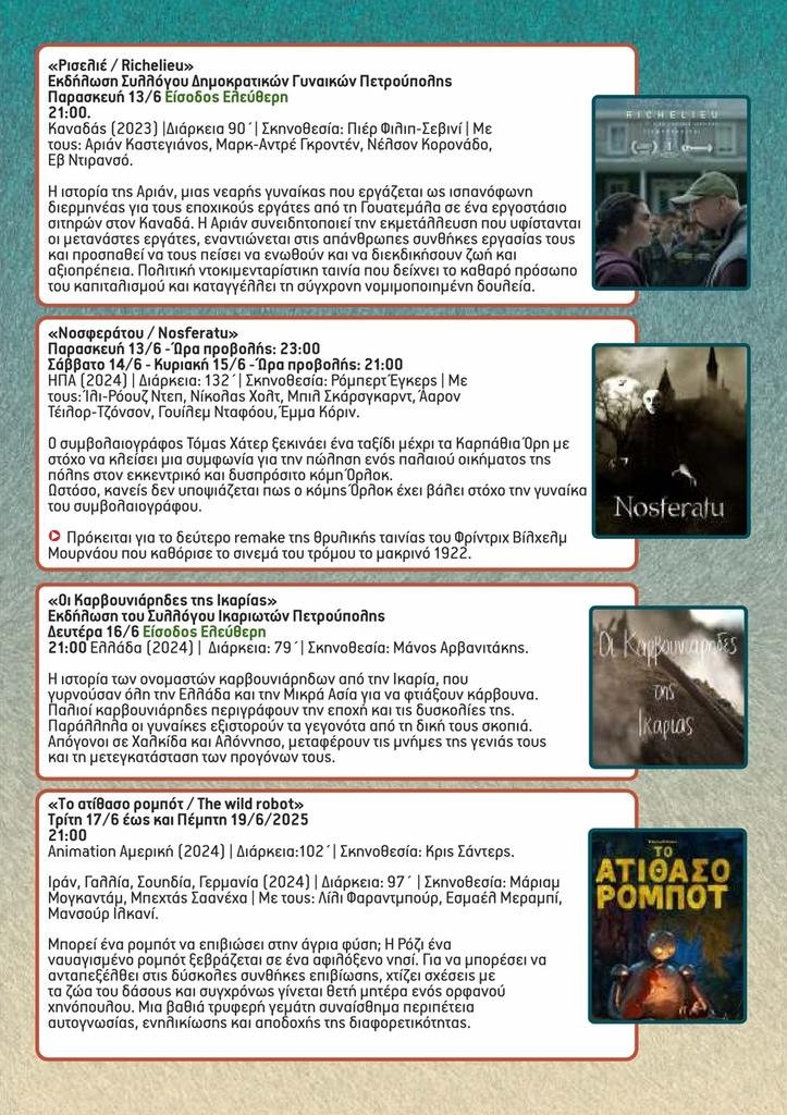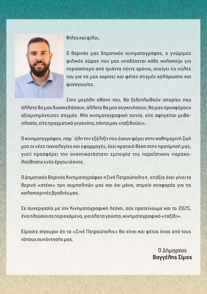Δείτε το πρόγραμμα του Δημοτικού Θερινού Κινηματογράφου, «Σινέ Πετρούπολις», για το 2025: